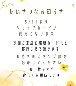 5/11からショップカードが変更になります